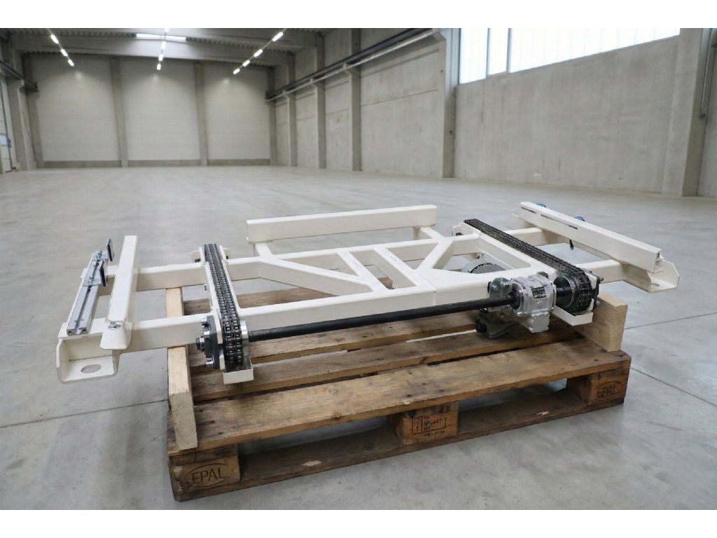 Dimenzováno na zátěž: Masivní hnací hřídel a těžký válečkový řetěz pro plynulý posuv těžkých palet a rozměrných břemen.